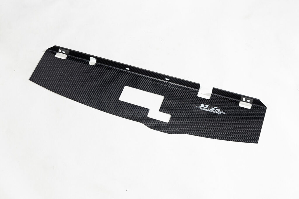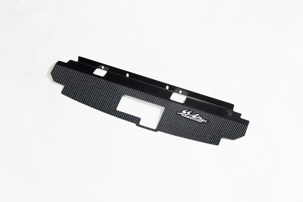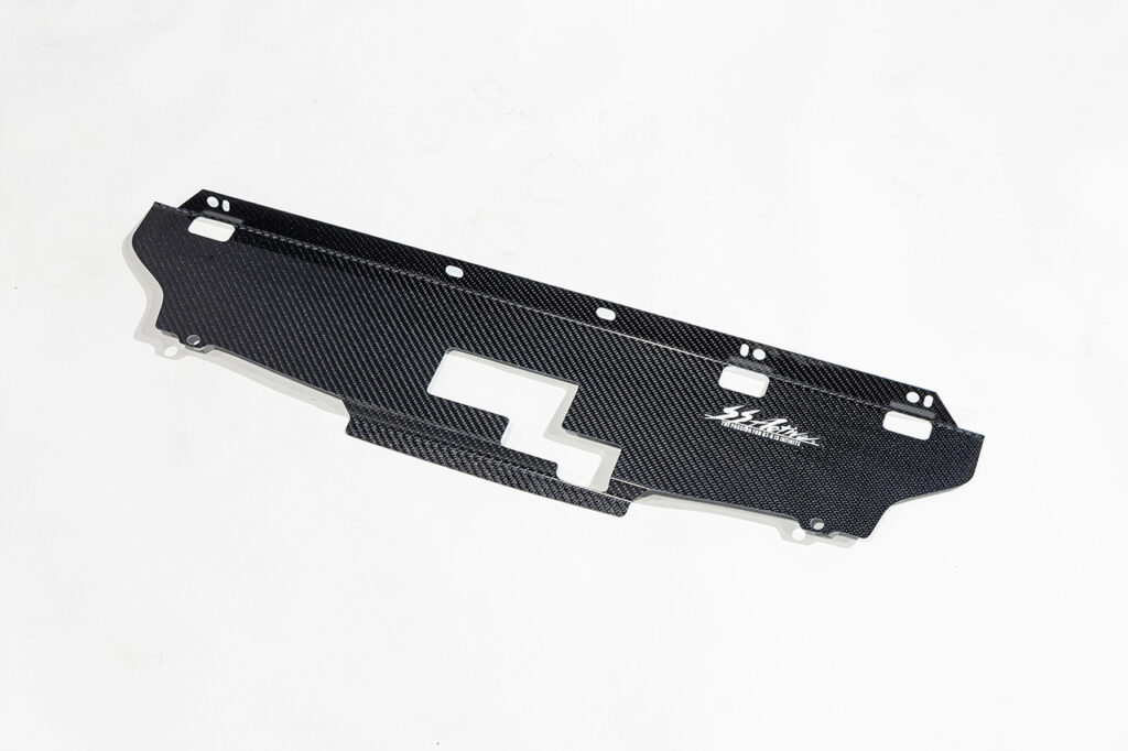 ドライカーボン製クーリングパネルです。エンジンルーム内の風の流れを制御してラジエターの効きを向上させます。